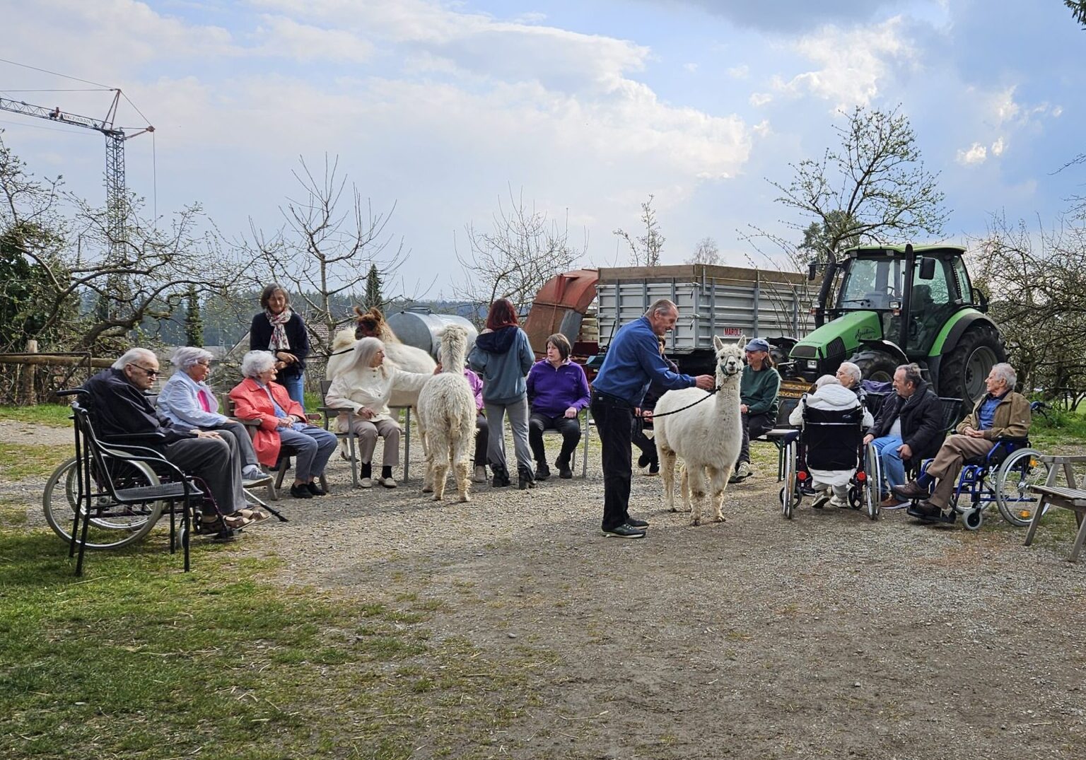 Am 23. März besuchten unsere Bewohnenden den Alpakahof von Ueli Stöckli in Meikirch. Nach einem gemütlichen Kaffee blieb Zeit zum Ankommen, bevor die Alpakas besucht und ausgiebig gestreichelt wurden.